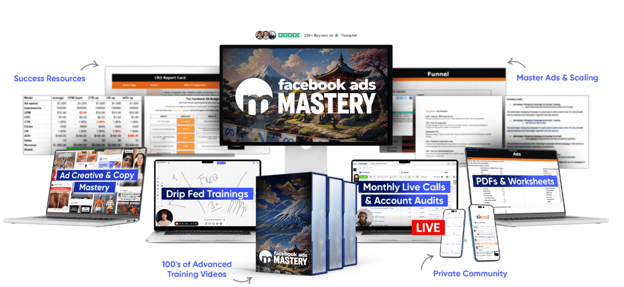 Facebook Ads Mastery is solely designed to help you transition from feeling confused, stressed, overwhelmed, and unprofitable to scaling your business. It removes all guesswork, provides clarity, and enables you to start running more profitable campaigns quickly, all without having to pay a fancy agency or relinquish control of your marketing to someone else.